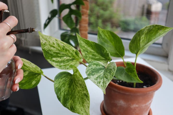 Watering: Pothos plants like to have their soil kept moist but not waterlogged. Water them when the top inch of soil is dry to the touch.