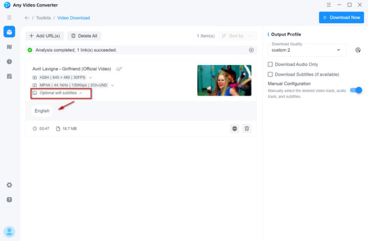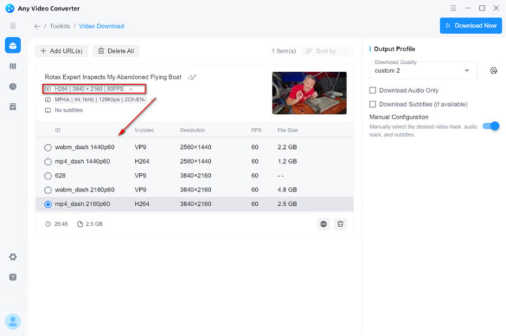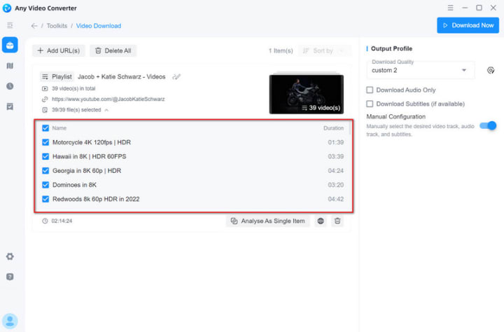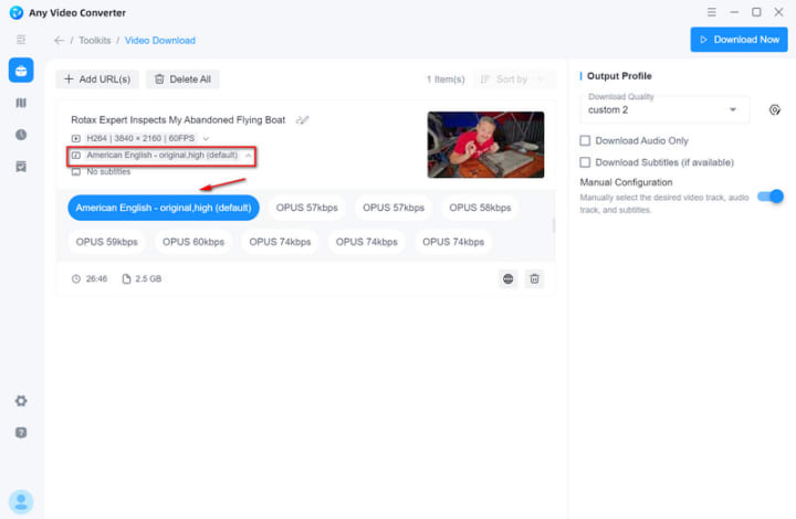 The manual configuration gives users full control over the specific video tracks, audio tracks, and subtitles they want to download. Here we will take Any Video Converter as an example to show how manual configuration works.