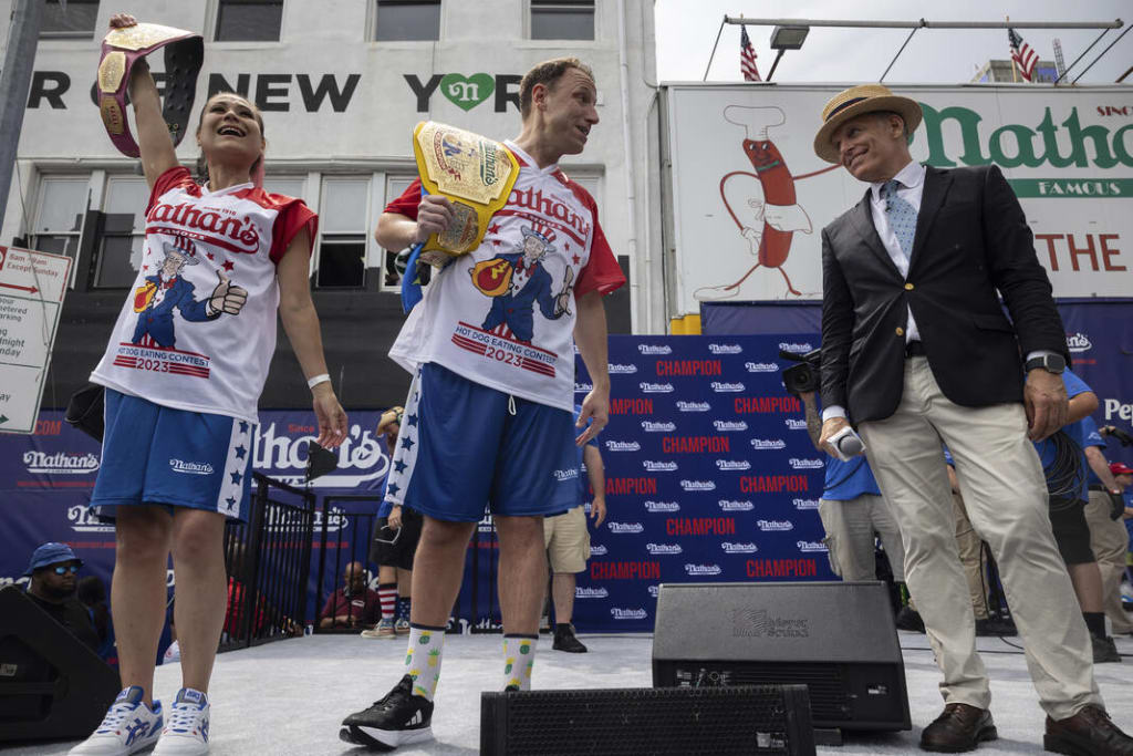 In a display of sheer determination and unmatched competitive eating prowess, Joey Chestnut once again reigned supreme at the annual Nathan's Fourth of July hot dog contest. Despite a rain delay and challenging weather conditions, Chestnut devoured his way to victory, defending his title and solidifying his position as the undisputed hot dog eating champion.