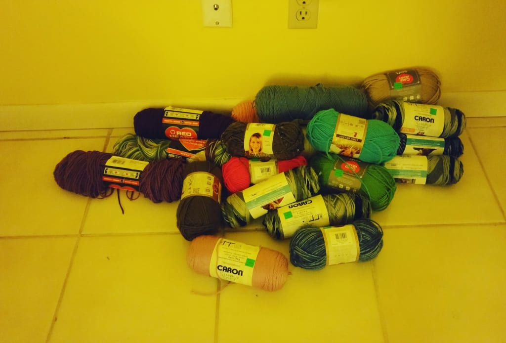 I buy balls of yarn, and so far I have a few that are ready to be made into beautiful scarves, hats, and shawls.