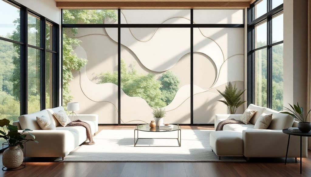 Sound-absorbing wallpaper improves acoustics. It reduces echo and noise in a room. This creates a more comfortable living space. It's a simple solution for noisy homes.