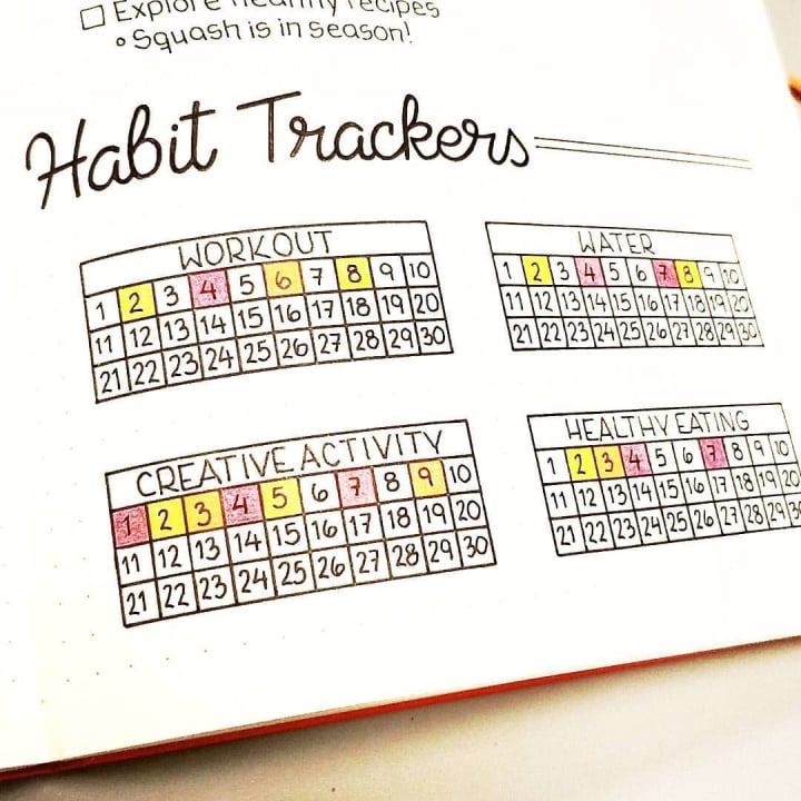 Trackers are my favorite thing about bullet journaling. You can create trackers for anything: your habits, your mood, your headaches, periods, medicines you're taking—you can even track books you've read and movies/series you've watched.