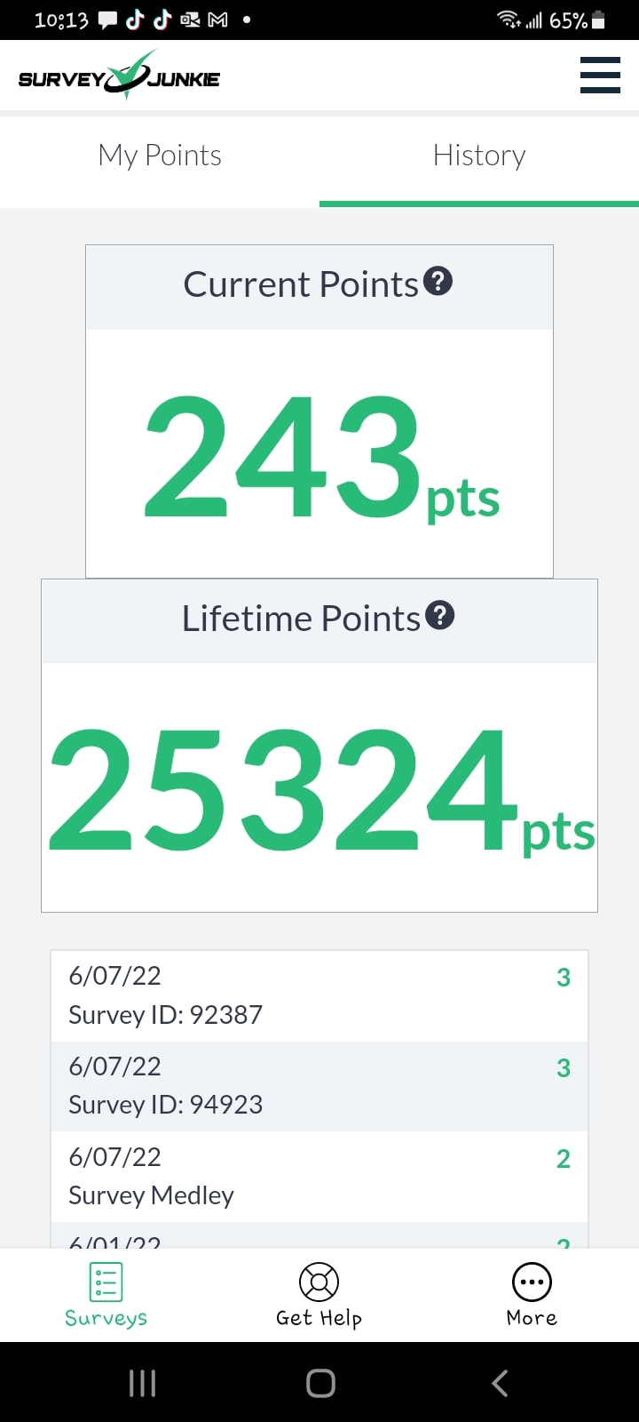 Survey Junkie runs a close second for my favorite platforms. It is available as an online website and a mobile app, however, it is important to note that few surveys are only available on the website version. Survey Junkie offers surveys earning only with a cash-out minimum of 500 points. A big upside to this platform is that they even give you points when you are declined from a survey. They also offer an extension called Survey Junkie Pulse, which runs in your background to offer you more tailored surveys, you are awarded each month for having the extension. Survey Junkie runs bonuses often for completing three surveys a day for a certain amount of days, usually 5 or 7, that land you a quick and easy 500 points. You can cash out your orders via PayPal, bank transfer, or gift cards. Points are equal to 1 cent. So yes, you are reading that right, I made $253.24 on this one platform in just 7 months as shown above. Sign up here: https://www.surveyjunkie.com