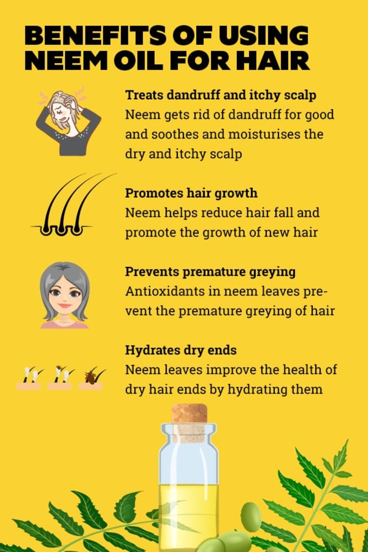 Neem is also good for the hair. It has antifungal properties that make it an effective remedy for dandruff and other scalp infections. It also helps in promoting hair growth and preventing hair loss.