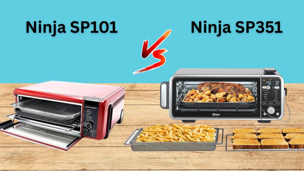 Blender-style air fry ovens have become a must in many kitchens but picking the right one can feel confusing. The Ninja SP101 and Ninja SP351 look very similar at first glance. Both flip up for storage, both save counter space, and both can air fry, bake, and toast in minutes.