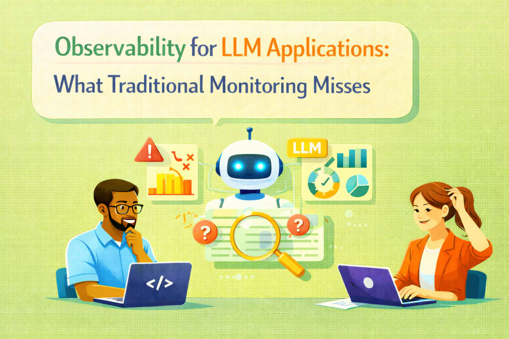 Traditional observability practices were built for deterministic systems. Developers monitored CPU usage, API latency, error rates, and infrastructure health to understand whether an application was working correctly. With large language model (LLM) applications, that approach no longer captures the full picture. Systems may appear healthy from a technical perspective while producing inaccurate, inconsistent, or harmful outputs.