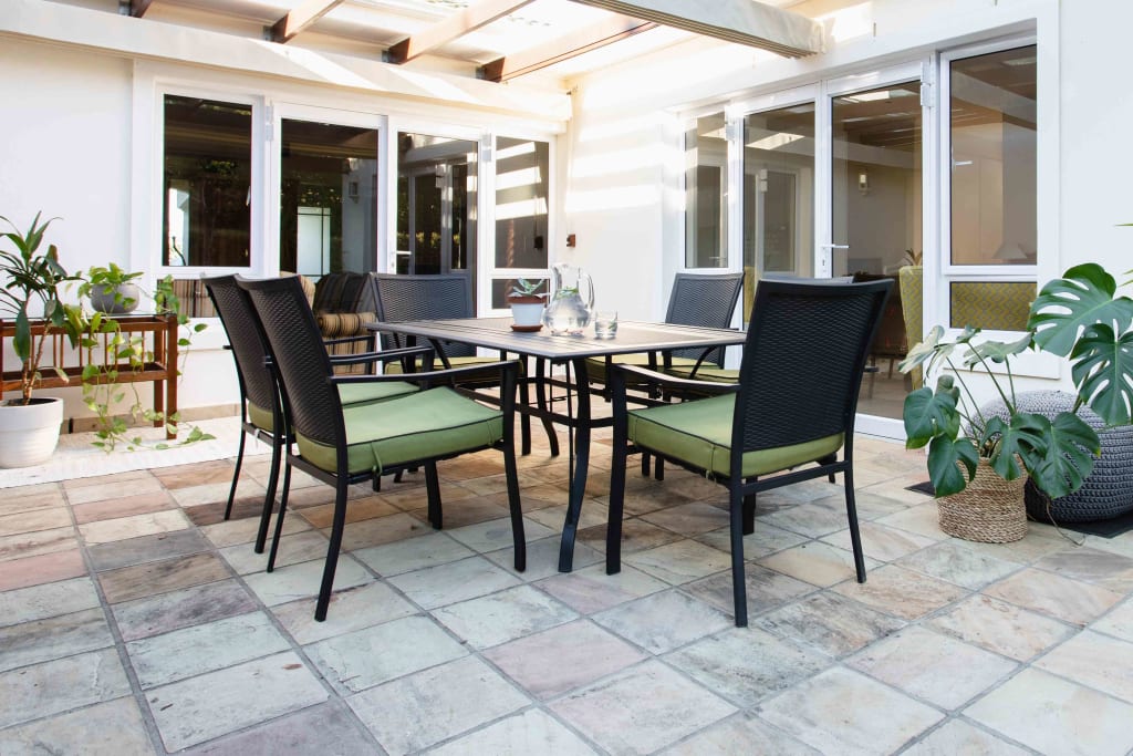 Apart from tiled floors, you could consider using other outdoor flooring materials. Pavers are a good alternative as they are cheaper than tiles and resistant to damage and abrasion. However, you should not use stone paving if there is another material on the patio or in the path of the stairs. It would look unsightly.