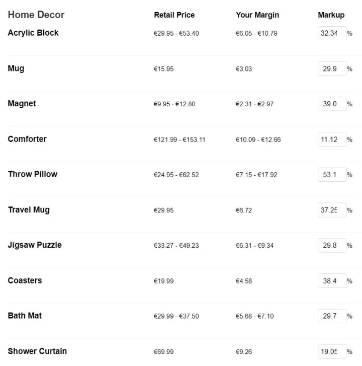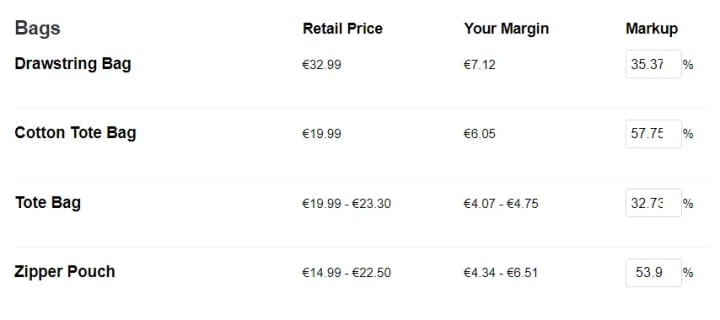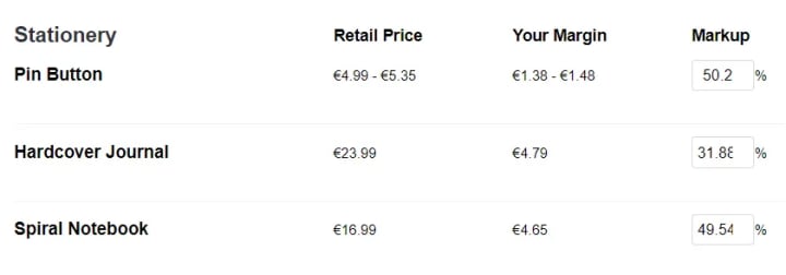 You have to review these prices once in a while, because Redbubble changes product costs regularly.