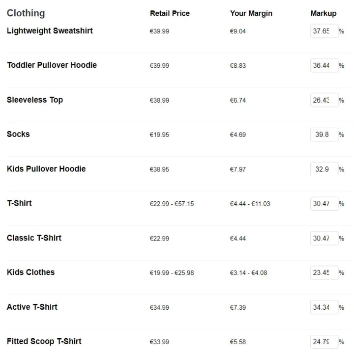 Below you can find the most important profit margins I’ve configured. As you might notice, my store currency is Euro, so the margins will vary if your store is in dollars.