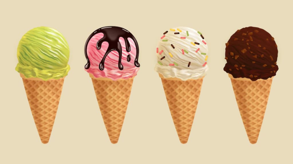 Ice cream is also a good way to reminisce about the past. As an adult, you'll remember how much pleasure you had with chocolate and whipped cream all over your clothes and parents' car even if you're eating vanilla in a small dish. You'll regret it if you eat vanilla ice cream without any flavoring, so at the very least, sprinkle some rainbow sprinkles over it because Ice cream Rolls season goes from age one until death!