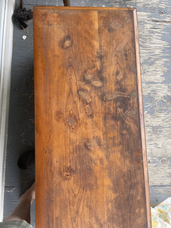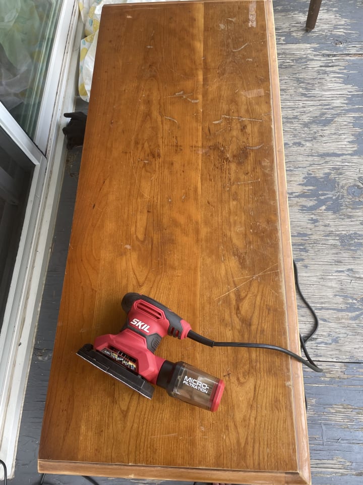 I left the store without buying it because it was pretty heavy and I wasn’t sure I wanted to embark on restoration - the top was beat up pretty badly, I’d have to sand off a lot of its surface. But that night, I swear, I had a dream where I bought an electric sander and decided that must have been a sign.