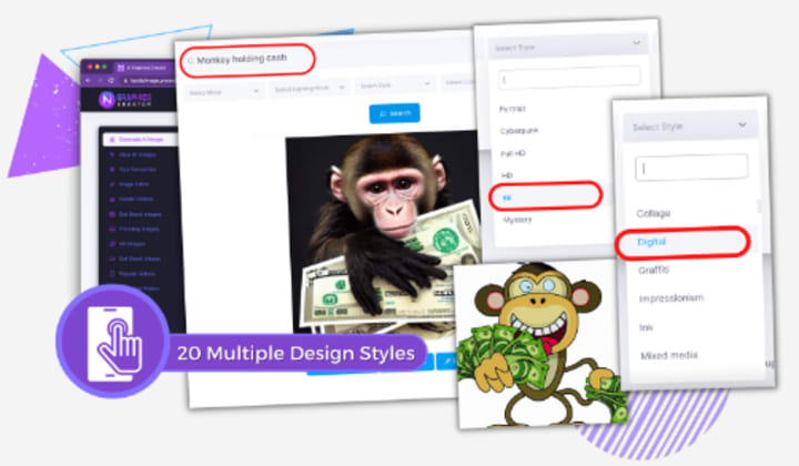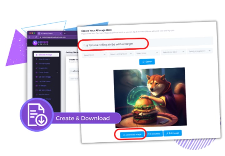 - The AI software instantly creates amazing graphics and displays them. Select, edit, and modify with the in-built image editor.
