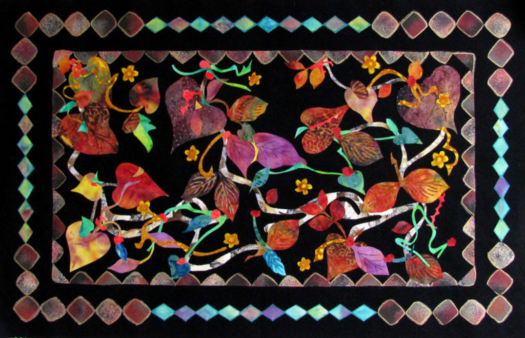 Fuse fabrics according to the manufacturer's recommendations. Then cut the desired shapes and heat fuse them to the background fabric using the tacking iron. When the piece is complete, cover it with a pressing cloth and press with a regular iron on cotton setting. This will ensure that all areas have been bonded evenly.