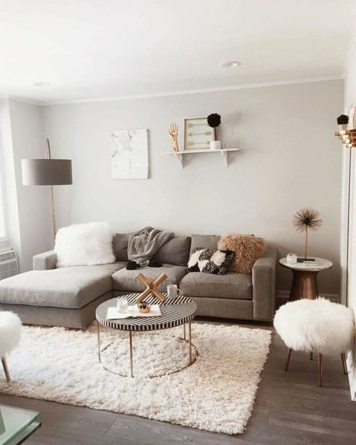 Another important factor you need to consider carefully when it comes to decorating small living rooms are flooring options. When it comes to color, a combination of a darker-toned flooring with cool tones on walls and ceiling expands the room visually. To create an optical illusion of a larger room, lay the carpet pattern or other types of flooring diagonally. Another tip to keep in mind is that you should opt for the biggest tiles or the widest planks for your small living room. When the flooring looks larger, the room itself looks larger. For example, if you choose vinyl flooring, make sure you choose 16, 18, or 24-inch tile size, rather than the standard square foot tile. Don’t forget to keep everything you can off the floor, it will provide more actual space and it will give an impression of a larger room.