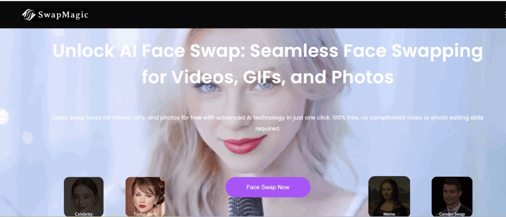 SwapMagic provides users with one-stop solutions to swap faces with friends, family, celebrities, movie characters, couples, etc., online for free. It utilizes AI technology to detect, track, and perform face swaps for videos, photos, and GIFs. Whether you are creating face swap memes for fun or engaging in advertisement, it can cater to your needs. It's 100% free, and no complicated video or photo editing skills are required.