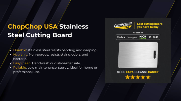 If you’re seeking the best stainless steel cutting board, Chop Chop USA’s version delivers unmatched strength and hygiene, ideal for professional chefs and passionate home cooks alike.