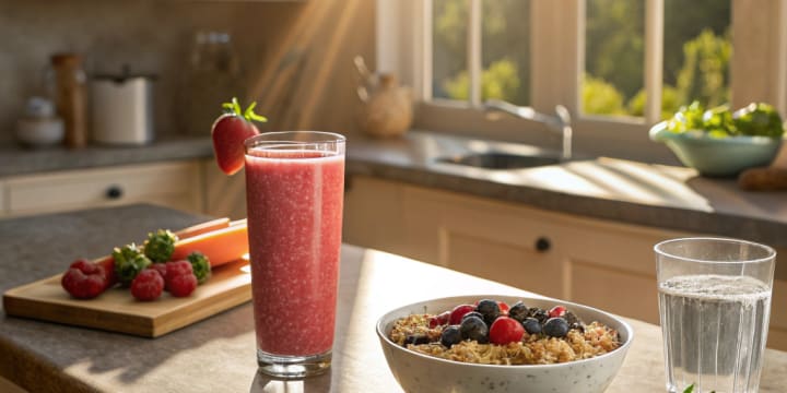 Your body dehydrates during the night. A glass of water before coffee gets your system going. Some include lemon for a refreshing sensation. Breakfast doesn't have to be huge—fruit, oats, or eggs can give you sustained energy with no crash.