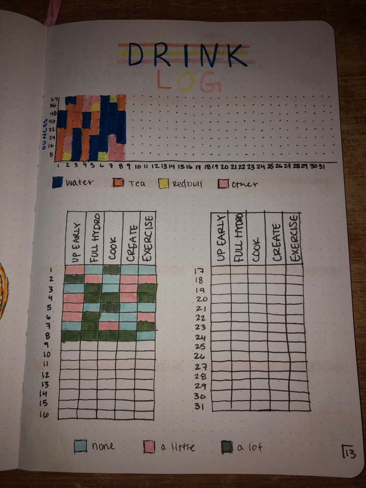 I like to track my habits to encourage myself to form good routines and most importantly to remember to drink water, which I am notoriously bad at but need to do for multiple health issues I have. You can put honestly anything here that you want or nothing at all. Tracking habits isn't for everyone, and if you don't think you'll keep up on it then I suggest leaving it out and starting your month here instead.