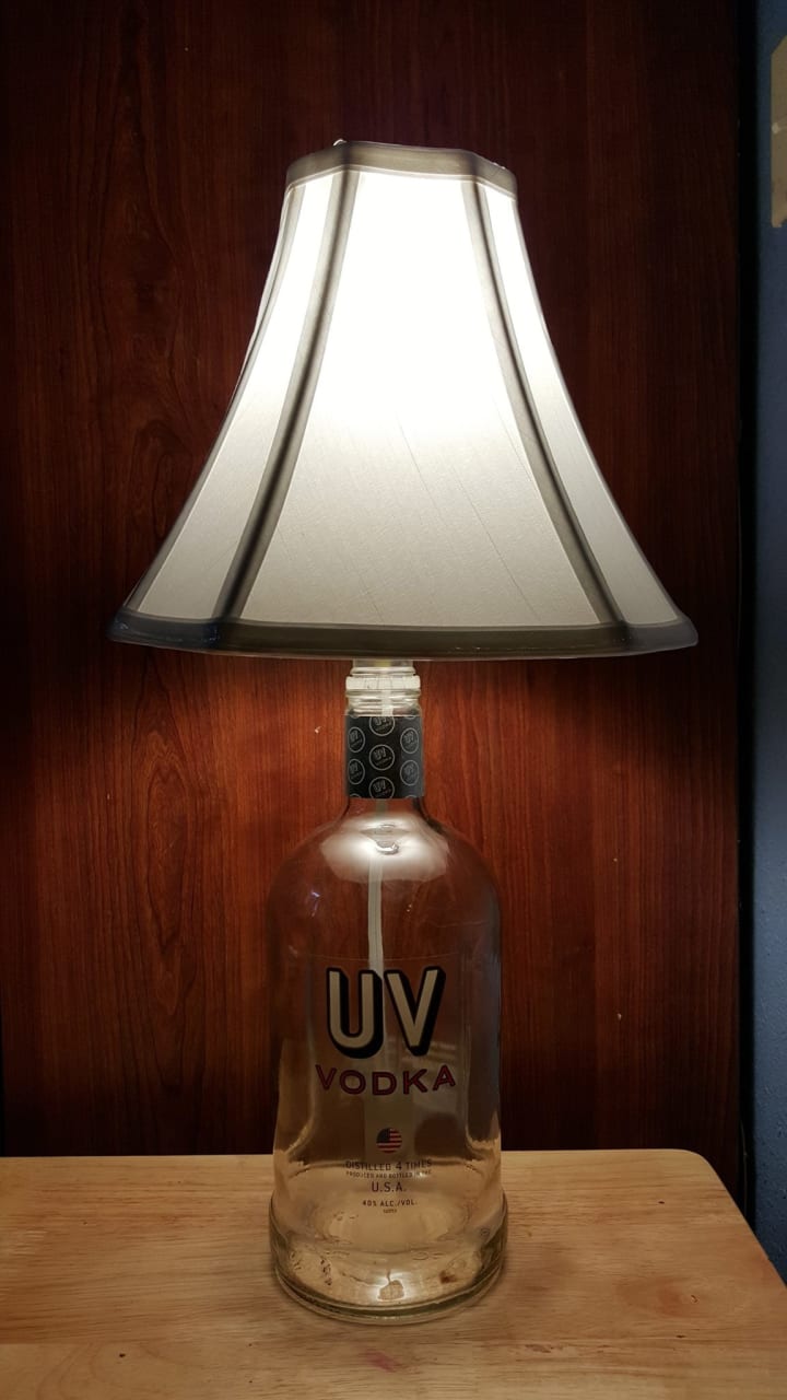 I made my first bottle lamp back in 2015. One day, while looking for my guitar in my son's room, I found an empty bottle of UV Vodka in his closet!