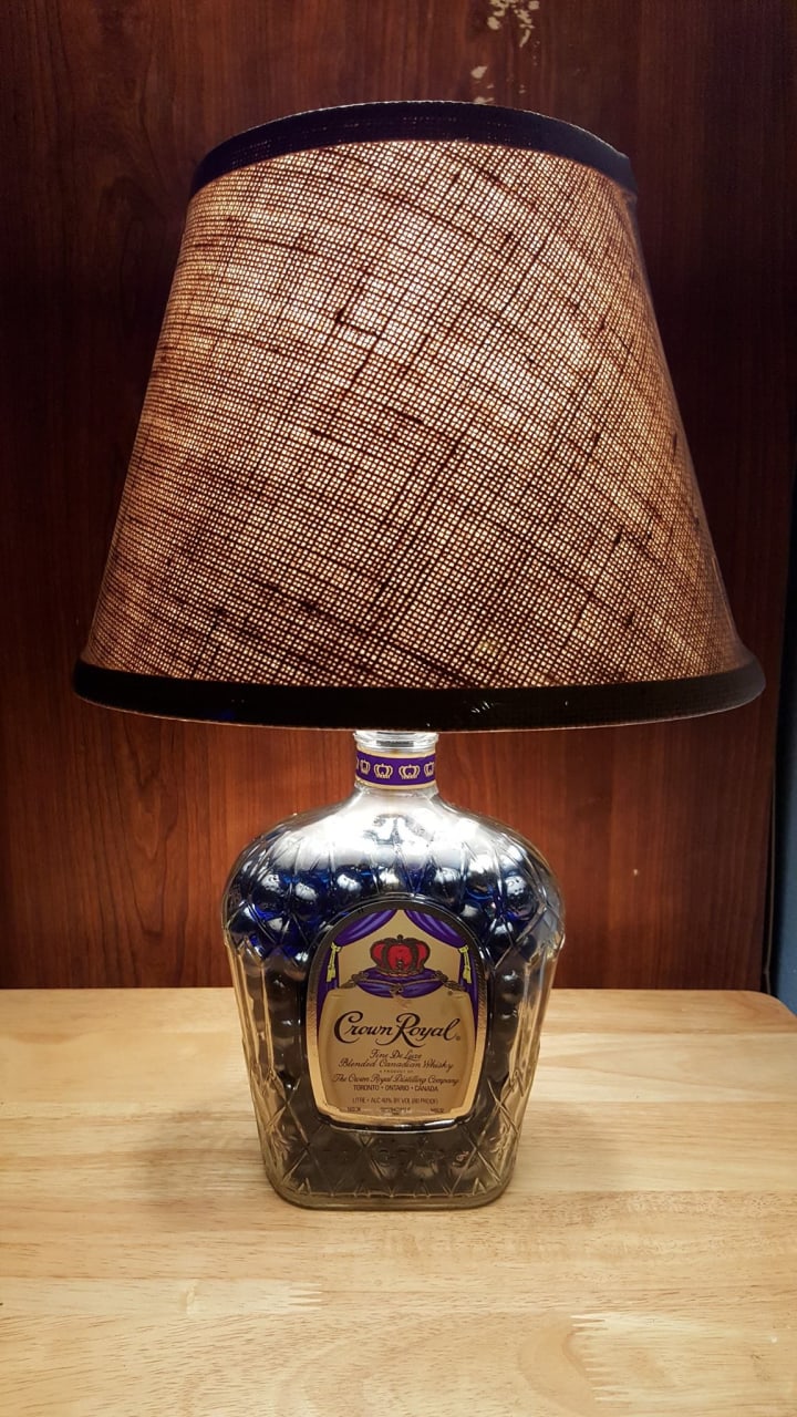 A few weeks later, my son's mother came to see my son again (yes, he lived with me) and this time brought a bunch of empty liquor bottles she got from the restaurant she worked at and gave them to me to make more bottle lamps. She said she would bring me more bottles when she could. The only thing she asked in return was for me to make her a lamp out of a Crown Royal bottle that she brought me. So, I, of course, made her a Crown Royal bottle lamp.