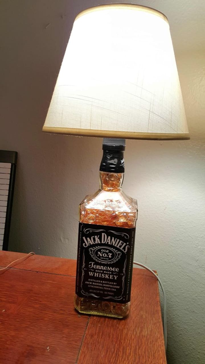 After the Crown Royal lamp, I made a few Jack Daniel's lamps, a Marilyn Merlot lamp (which I consider my favorite and sold for $60), and more. I posted them on Facebook and friends, family, and co-workers asked me to make bottle lamps for them.