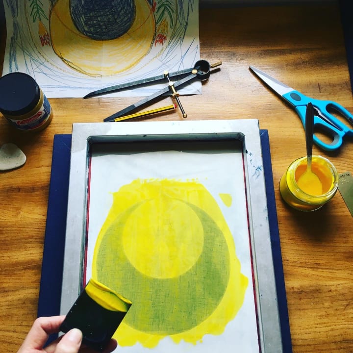 Swoosh the ink glides through the silk screen.