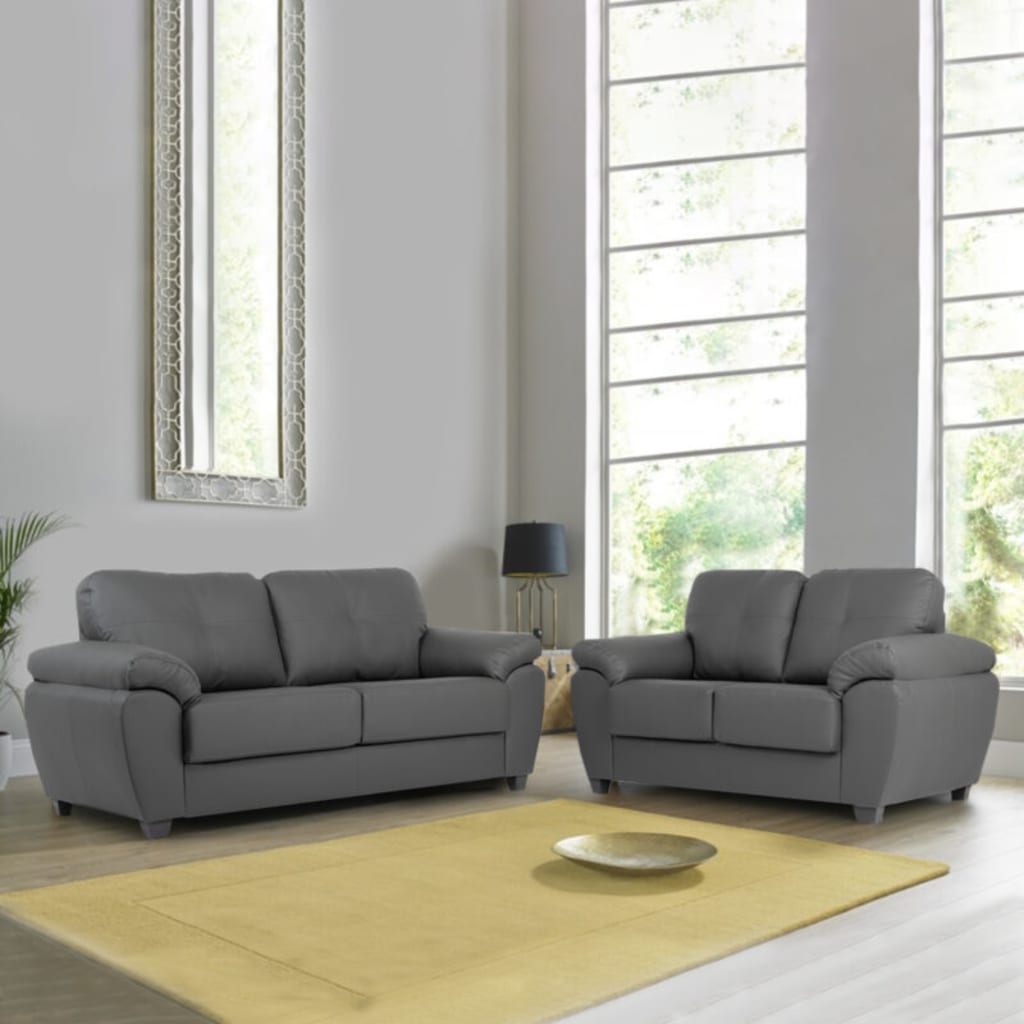 The Capri 3str and 2str sofa set features black faux leather upholstery and foam seat cushions. Its design is inspired by classic chesterfield sofas and comes with a number of traditional features including turned legs and scrolled arms See more….. The modern touch of channel tufting ensures that this sofa is a standout piece in any home.