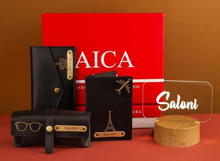 1. AICA Personalized Name Women’s Combo LED Lamp Giftset – 4pcs (Black)