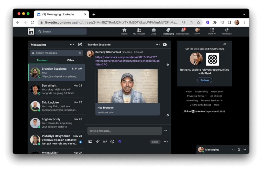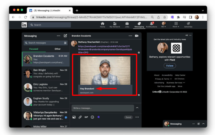 Sending a personalized sales video to prospects on LinkedIn is one of the best ways to get their attention. You’re almost always guaranteed to stand out from other text messages in their inbox.