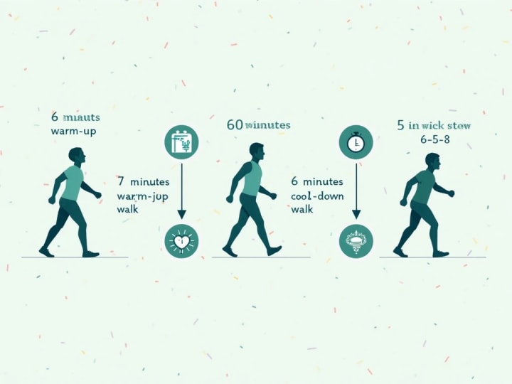 The format is simple: 6 minutes of warm-up walking, 60 minutes of brisk walking, and 6 minutes of cool-down walking. That’s it. No fancy equipment, no expensive gym memberships, just the discipline of putting one foot in front of the other.