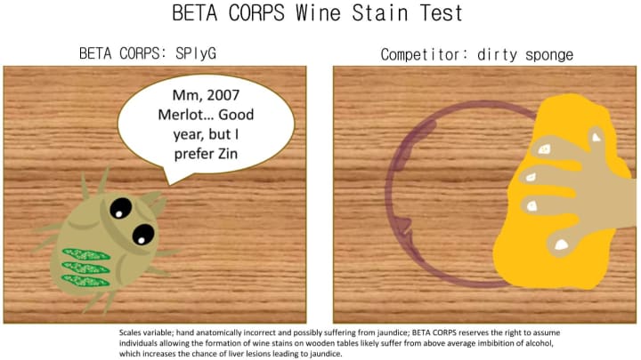 How about a wine stain? No problem! SPlyG metabolizes so quickly drunkenness is a physical impossibility. Can bleach claim to never be drunken?