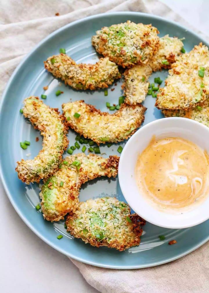 8. Air Fryer Avocado Fries: These delicious fries are a unique way to enjoy avocados. Coat slices of avocado with breadcrumbs and seasonings, and cook in the air fryer for a crunchy and flavorful lunch.