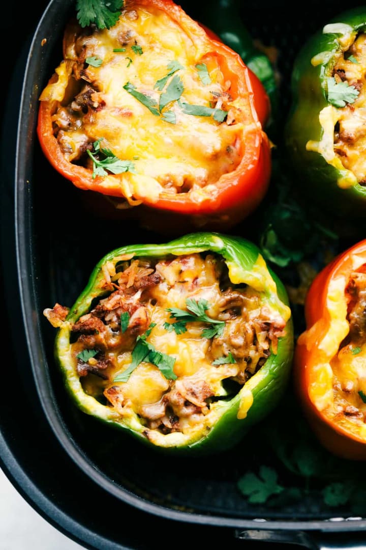 10. Air Fryer Stuffed Peppers: This easy and healthy lunch idea involves stuffing peppers with rice, beans, and other tasty ingredients. Cook in the air fryer for a delicious and filling meal.