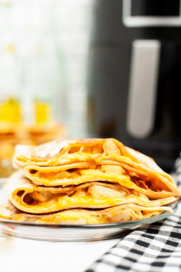 12. Air Fryer Chicken Quesadillas: These cheesy and delicious quesadillas are a great lunch option. Fill with chicken, cheese, and other toppings, and cook in the air fryer for a crispy and flavorful meal.