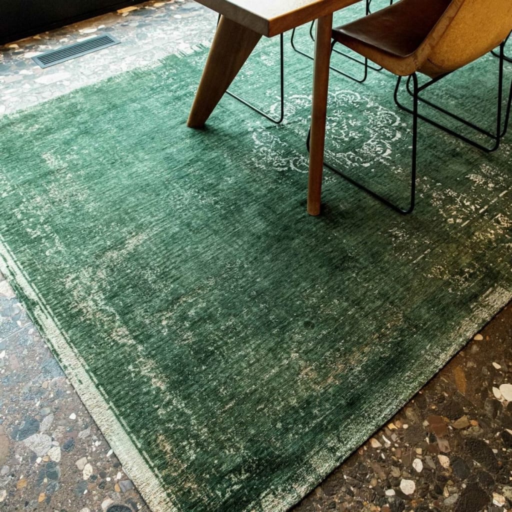 Pro tip: For a casually stylish, Scandi-inspired style, combine your dark green rug with light wood furniture and creamy white walls.