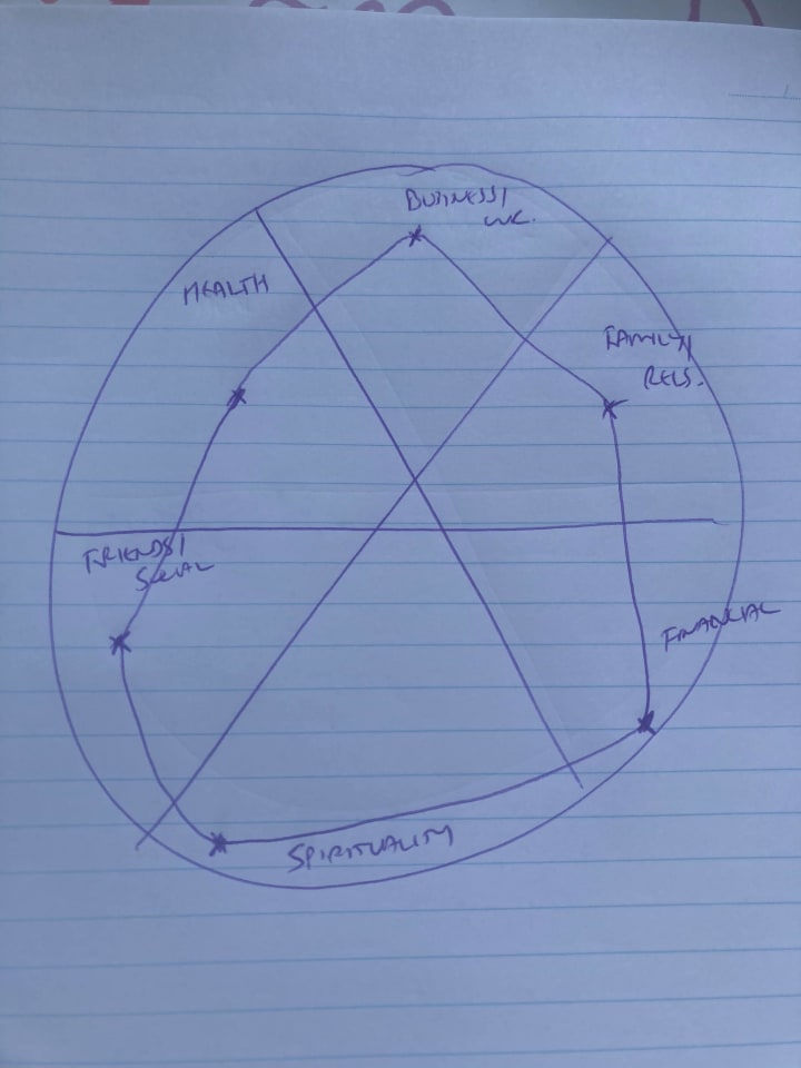 What is happening right now? That is a valid question to ask. Then you might be inclined to grab a blank piece of paper, and draw a circle smack bang in the middle. Then you divide the circle into a pie, where each life area represents a slice of that pie. That is, one slice for each area as follows: Health. Career/business/work. Family/relationships. Friends/recreational. Spiritual. Financial. Then you put in a dot (or an asterisk) as to where your life is at right now, on an imaginary scale of 1-10, where a 1 out of 10 would be closest to the epicentre of the circle - where things are not going so good, while a 10 would be right near the outer edges of such, and you perceive your life to be absolutely fantastic in that area. The idea is to then connect all of the dots; no different to a dot-to-dot. This will leave valuable clues as to how balanced the wheel is, and specifically, what that wheel of fortune in like in your life right now. Some areas might be too charged up, while others need some more breathing space.