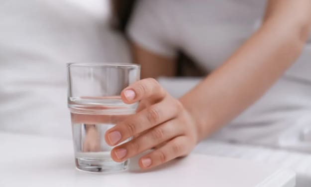 A hot cup of tea is very suitable, as is a glass of water in which you put a pinch of sea salt. This salt-water combination allows the body to absorb more fluid, so you won't have to take night shifts in the bathroom.
