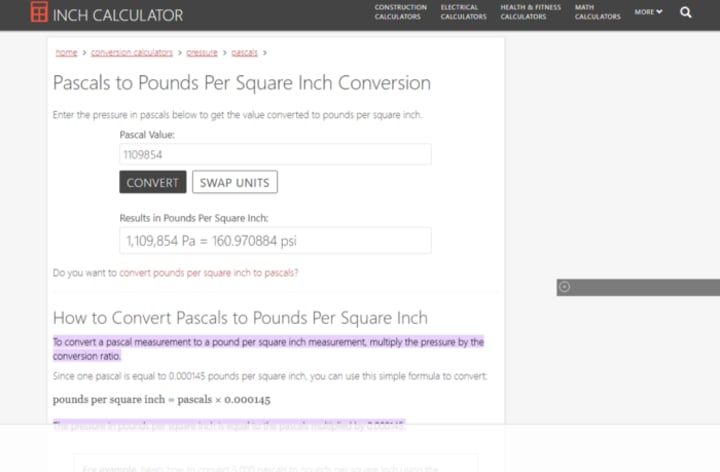 To figure out what the approximate pressure involved in a step is, I used a 250-pound man at 6'4". This number is figured in Pascals (PA). The Pascall value rounded to the nearest whole number of 1109854 was then converted to see what the measurement in square inches was. The result was 160.97 pounds per square inch.