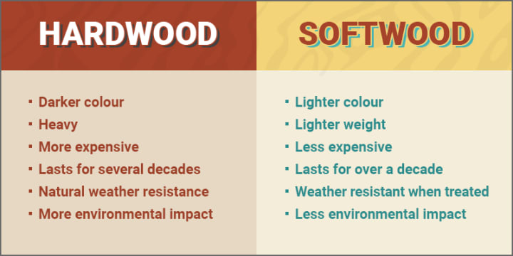 Softwood, on the other hand, is lighter in weight, cheaper to buy, and more sustainable to produce.