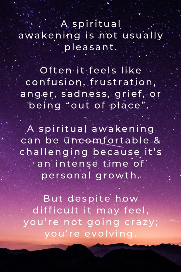 Spiritual awakening: Many often may call it nirvana, bliss, but it is simply a form of "enlightenment". A spiritual awakening begins the moment a person can step back and "awaken" to their life with a newly sense of being in this world. Essentially it is a call to higher consciousness and deeper mental self awareness.