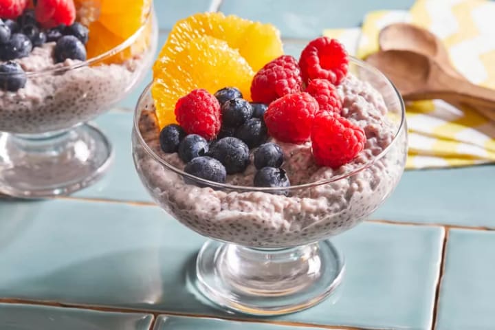 If you’re looking for a change from overnight oats but want that same sort of make-ahead convenience, give chia pudding a try. This version features a rich chocolatey pudding and juicy raspberries, which is one of the best foods to help lower blood sugar.