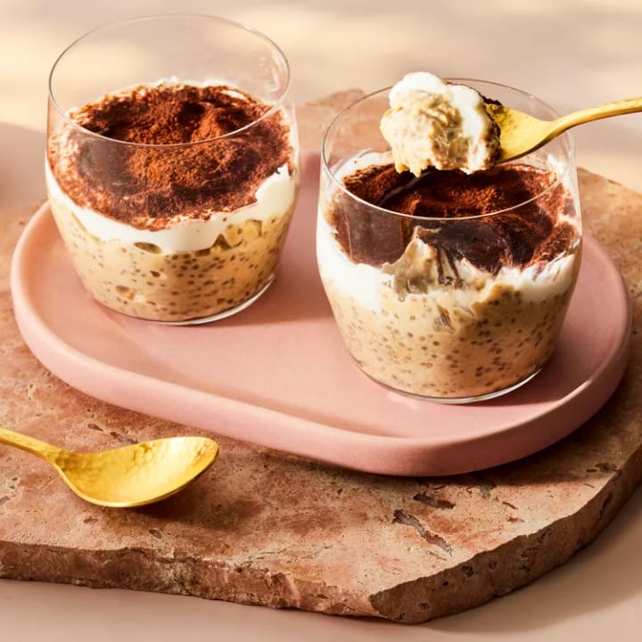 Tiramisu for breakfast? Almost! We took the ingredients of that classic dessert and used them to flavor this overnight oats recipe—complete with a dusting of cocoa powder on top to complete its iconic look. Oats are a great source of slow-digesting carbs and fiber, which are important for steadier blood sugar levels. Not to mention, we top each serving with tangy yogurt for some filling added protein, but you could use ricotta instead.