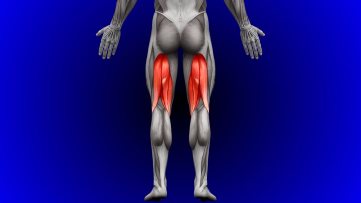 The hamstrings are a three-muscle group on the back of the thigh.