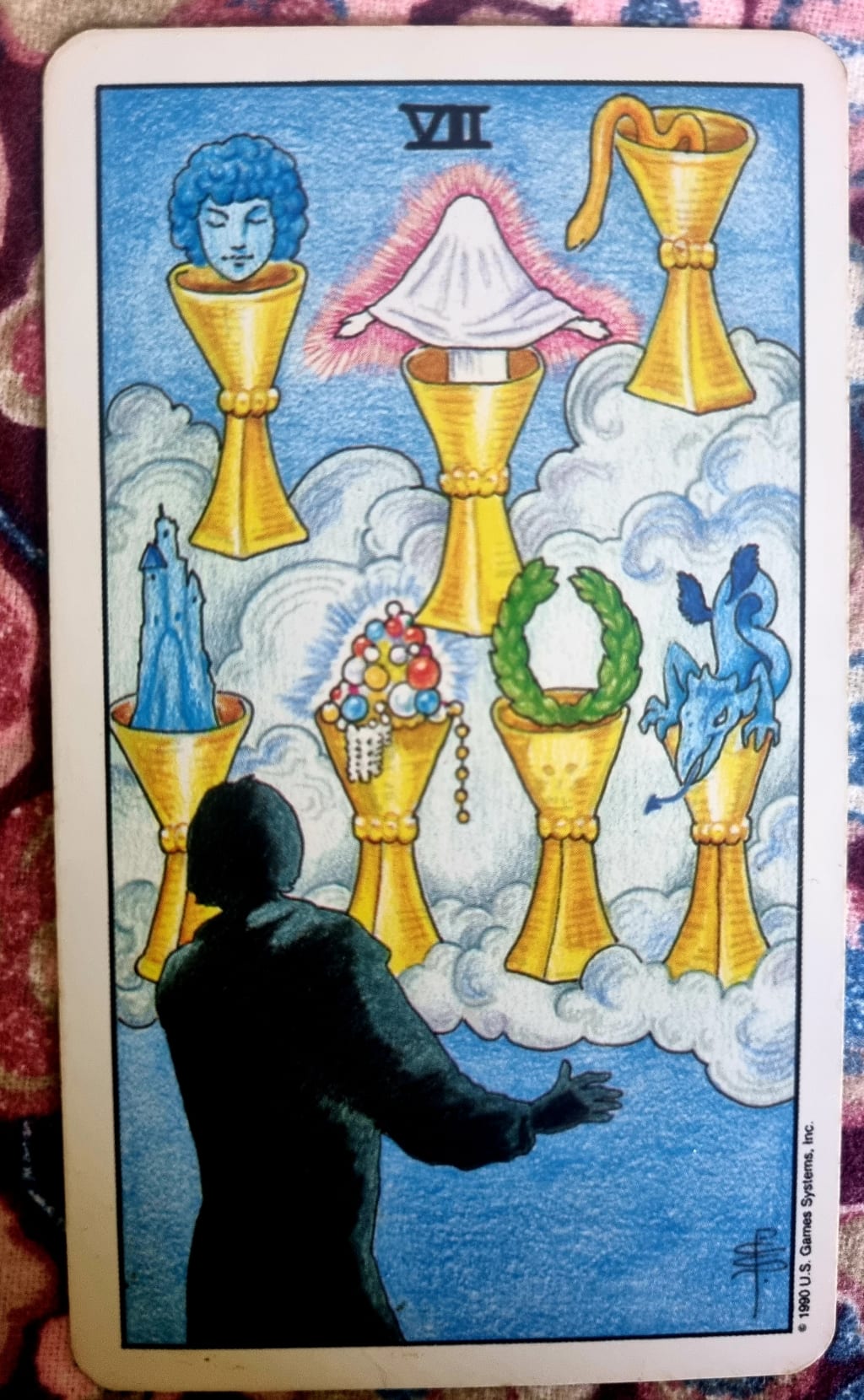 Have you ever wondered what the 7 of cups means in Tarot? It's a mysterious card, a shadowy figure is presented with 7 magical golden cups, he can only choose one. If he chooses wisely will he have a dream come true?