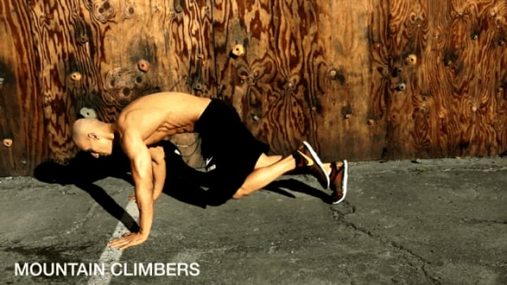 Key points: Maintain a high plank, alternating bringing your knees toward your chest, keeping your core stable.