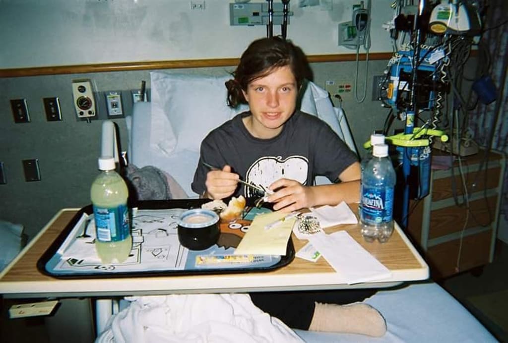I received the best care at Children's Hospital. I was happy to learn that most, if not all, of the nurses that cared for me were type one diabetics, themselves. It helped me to not feel alone. Some of my family members met me at the hospital to learn how to manage T1D with me. Insulin, blood glucose, ketones, carb counting, insulin to carb ratios, high coverage, glucagon: all of this was entirely new to me. From this point on, for every time I eat, I would have to check my blood sugar, count the carbohydrates in whatever I'm about to eat, divide the carbs into units of insulin using my insulin to carb ratio, account for a high sugar with additional units of insulin or subtract units for a mild low, and inject myself with a shot of insulin. A new normal. You'd think based on the denial that I mentioned that I wouldn't have complied with any of this. But I did. I knew that it was that or death. My body doesn't produce insulin and I can't survive long without it.