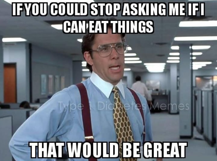 That cupcake I ate couldn't do the trick, either. Speaking of which, we HATE it when someone stares at us as we eat "junk food" or tries to warn us we "shouldn't be eating that." I can eat whatever I want, as long as I count the carbs and give myself the appropriate amount of insulin for it.