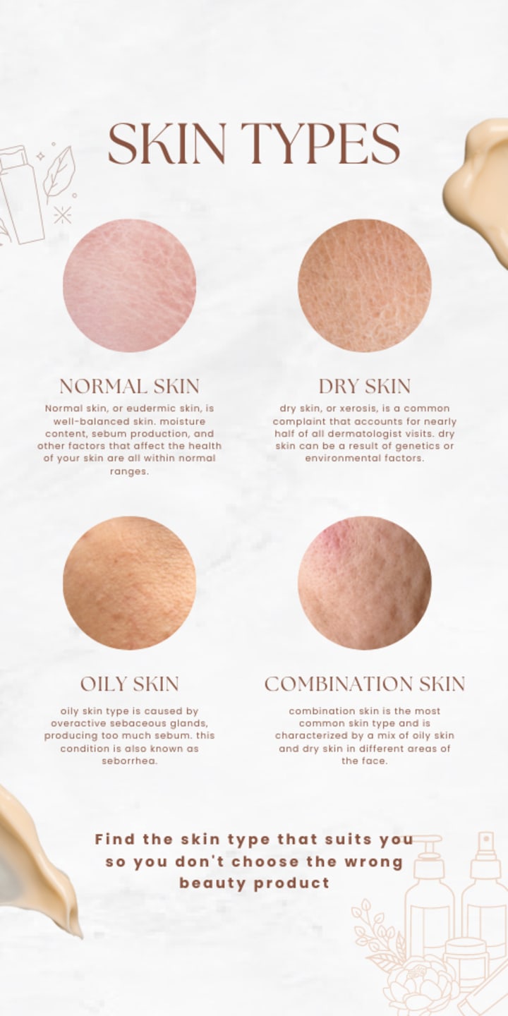 Dry skin types should focus on hydrating and nourishing ingredients to restore moisture and strengthen the skin barrier. Look for products containing shea butter, omega fatty acids, and hyaluronic acid to keep your skin soft, supple, and youthful-looking.