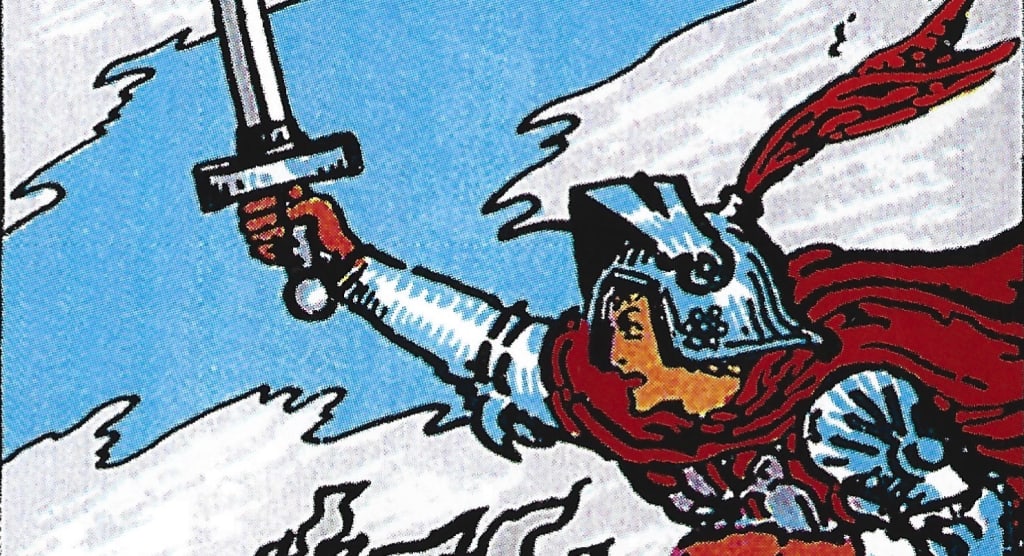In the 8 of cups, we see a man walking along a stream. It’s rocky and jagged. Not an easy walk. He is alone. He might not be lonely though. The moon is full in the sky. The moon is a feminine energy I have read in some places that the moon could suggest a warning or caution. But I see the moon as a guide here. Helping this man walk a path that is not easy. This card is full of emotion too. The stream the man is following is not pretty. It’s a rough, jagged river with lots of rocks. But this card is about taking the time to be by yourself. To reflect on what has happened. To go inside and calm down. To quiet oneself. This is usually the best to solve a blow-up of emotion like what we see in the knight of swords