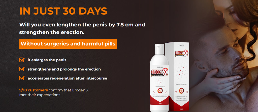 Erogen X is advertised as the ultimate remedy for sexual problems on various sales pages of the manufacturer. Supposedly, the gel was made in the lab to optimize the size and endurance of the male genitalia. By using the product regularly, potency and erection problems should be a thing of the past.